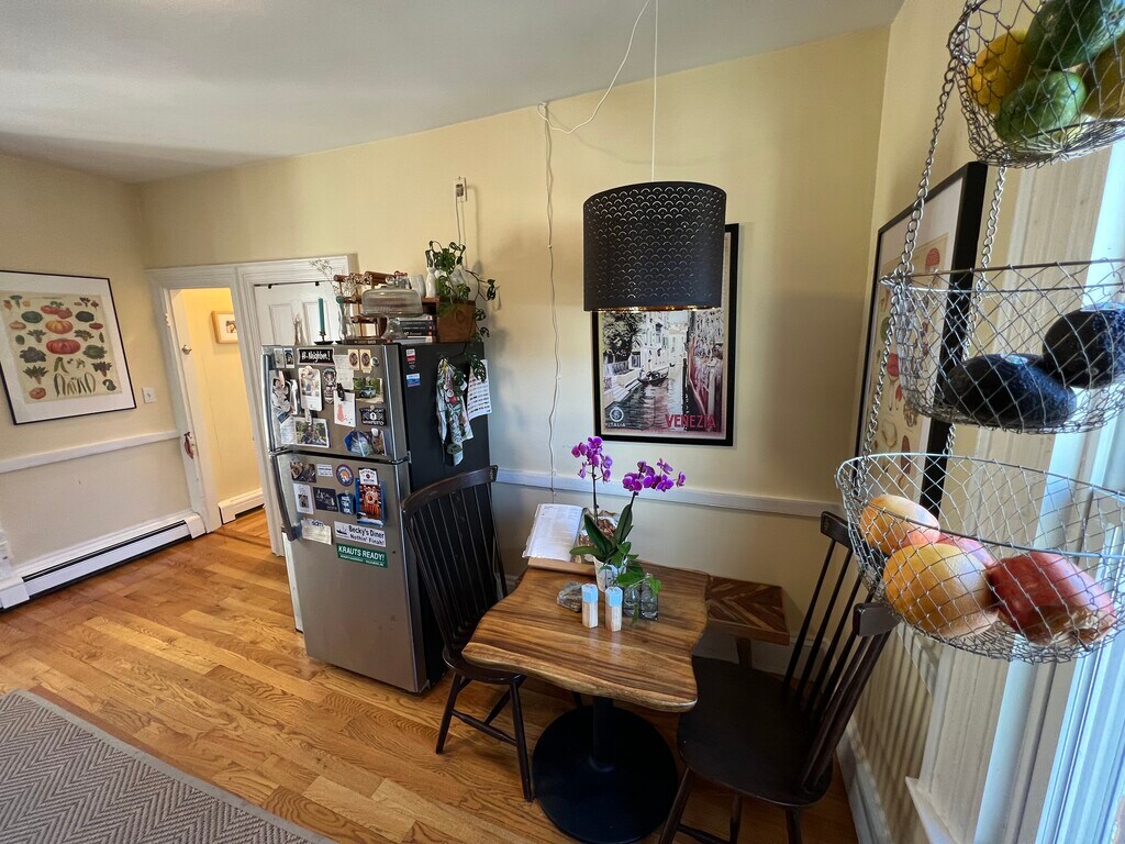 Davis Square 1 bed/1 bath (second floor) Updated kitchen (granite countertops, ss appliances, nice cabinets, etc.) Updated tiled bathroom Bright extra sunroom Hardwood floors Coin-op laundry in the basement Street parking
