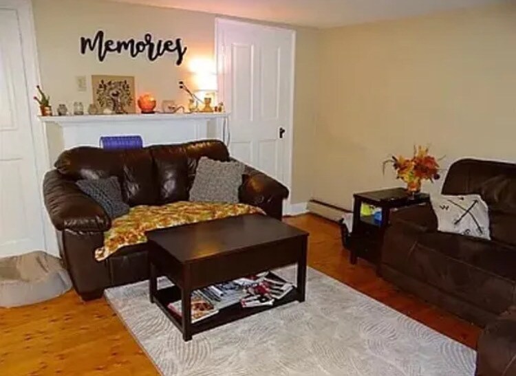Sunny rental right in the heart of downtown Dover. 1850's building exposed beams in bedroom, huge porch, wood floors, in unit washer dryer, 2 parking spots, heat and hot water included. Owner pays for heat, hot water, renter pays for electricity, internet. Cats and small dogs are okay, no smoking inside. Two dedicated driveway spots.