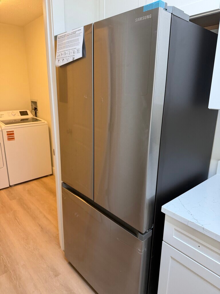 Absolutely beautiful and everything is new - right down to the electrical plugs! End Unit - Bottom floor walkout * Beautiful updated brushed nickel fixtures * New toilets * Water and sanitation included * Large bedrooms with large walk-in closets * Two full baths * Stainless Appliances - Oven/range/refrigerator/dishwasher * Laundry/utility room with washer and dryer All new doors, floors, cabinetry - everything! Wooden plank flooring throughout!! The property is located in the beautiful Bentwood Hills sub-division with one assigned parking spot right outside the building entry door. The sub-division has a walking trail, fitness center, sauna, and a swimming pool to enjoy during summertime. It's conveniently located with quick access to I-47 &, I-275. Water/sanitation included! Sorry, no animals and no smoking allowed.