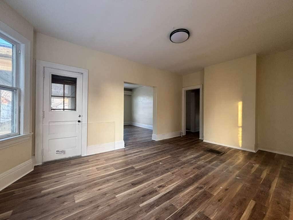 This unit is Move-in Ready by December 30, 2025! The beautifully renovated and freshly painted 3-bedroom, 1.5-bathroom unit provides a comfortable living space and is perfect for families. Enjoy spacious rooms with high-quality hardwood flooring in high-traffic areas, and freshly installed carpet in the bedrooms and closets. Private, newly-built deck is ideal for relaxation and entertainment. The property is a triplex and has a basement which can be used by all tenants. Tenants pay for all utilities. Don't miss out on this amazing opportunity! Contact us to schedule a viewing today.