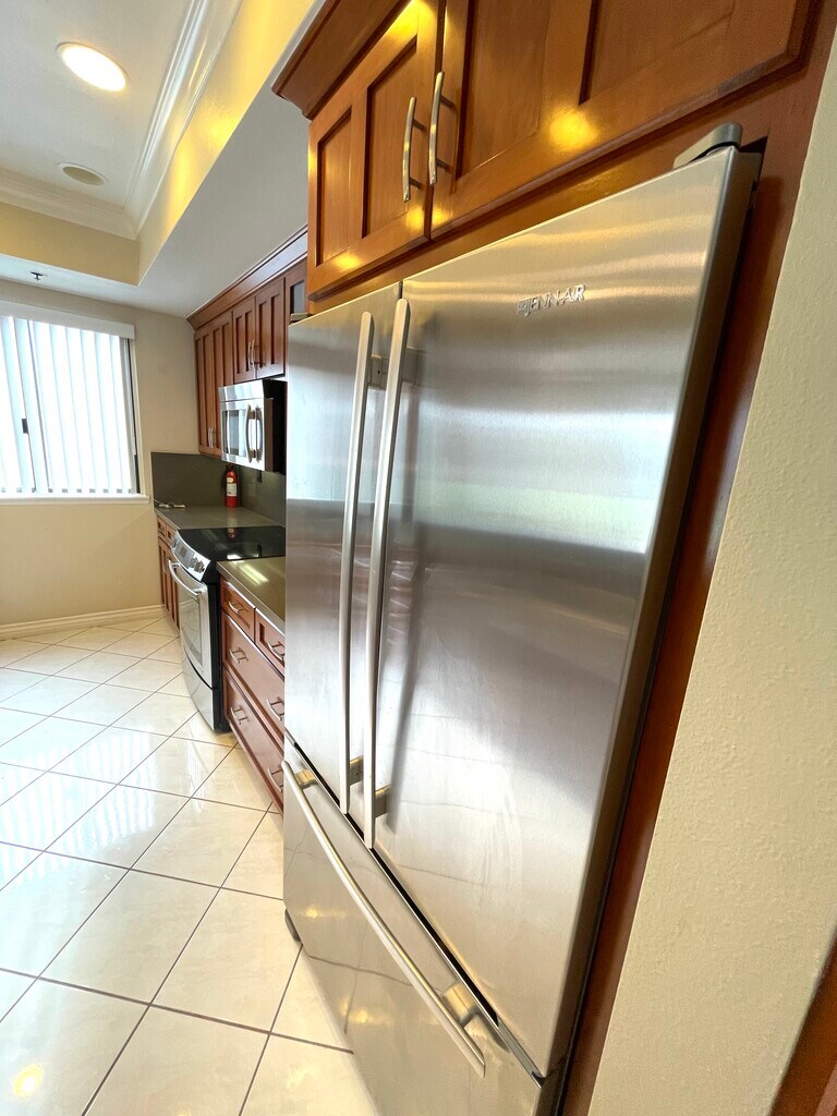 Fully remodeled 1BR/1.5bath condo overlooking picturesque Czuleger Park in the resort-style “Seascape 2” gated community. Within walking distance of King Harbor marina, Redondo pier, sand beach entertainment venues, restaurants and Whole Foods. Spacious living room features ceiling fan and full width balcony overlooking the park and a peek-a-boo view of the ocean beyond. Fully remodeled gourmet kitchen features Jenn-Air stainless appliances, soft-closing cherry cabinets, a double-door pantry, and soft white LED ceiling lights. Kitchen also incorporates a washer/dryer combo concealed within a matching cabinet door. Bedroom with ceiling fan offers a peek-a-boo view of marina features en-suite full bathroom with separate tub and walk-in shower, and walk-in closet. Bedroom and living room are carpeted and will be shampoo cleaned prior to occupancy. Gated two side-by-side parking spaces have two large cabinets are located down a slope from the elevator. Rent includes water/hot water/sewage and trash collection. AEK and hydronic central heating. Internet and basic DirecTV are provided to tenants without a fee. Community offers such amenities as resort-style pool, two spas, fitness center, locker rooms, showers and dry saunas. Property is located within highly-rated Redondo Beach schools district, and Redondo Union High School is only a few minutes walk away. Positively no pets accepted. Tenants are required to carry personal liability insurance throughout the tenancy.