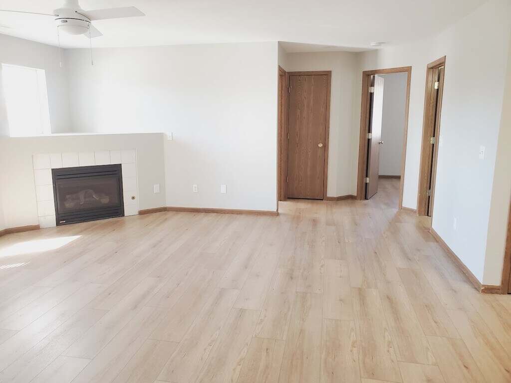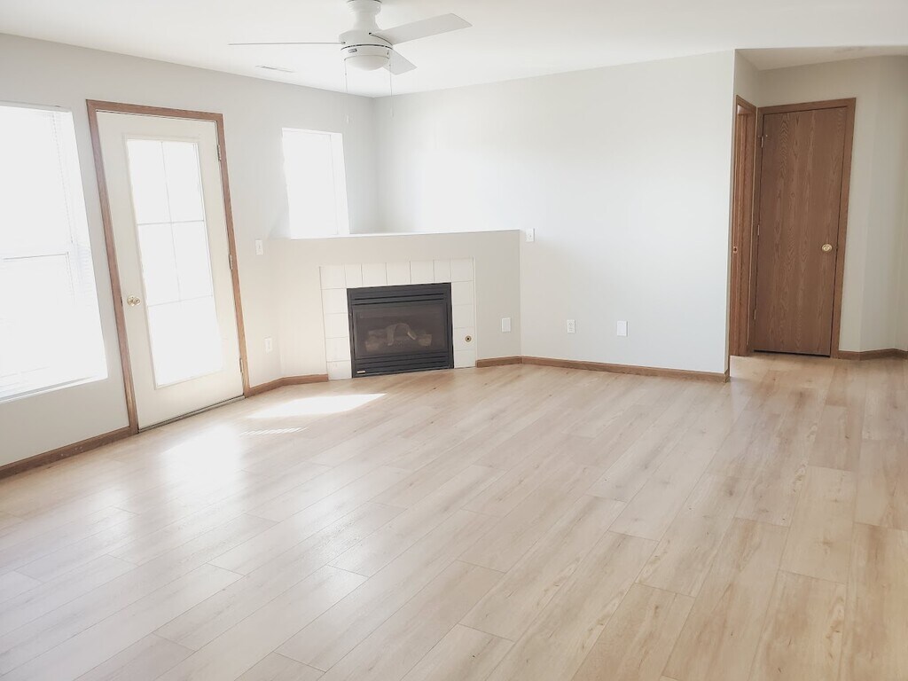 Great secluded NE location with quick access to the interstate, Collins Aerospace (Rockwell), and tons of stores and restaurants! 2 bedrooms, 1 bathroom. Fresh paint throughout. Brand new LVP flooring throughout. In-unit laundry. Detached 1-stall garage included. Second-story condo with private deck. Central AC and heat. Gas fireplace. Secured building entrance. Trash paid; tenant pays all other utilities. Cats would be considered.