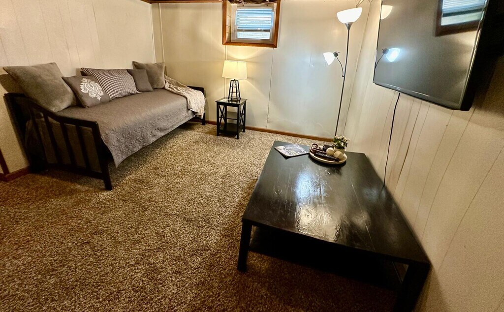 This well-furnished flat is located in Peoria’s charming Orange St and features a basement studio, making it ideal for 2 people. With a 50 inch smart TV, free wifi. All utilities. Your needs are settled as this home away from home comes with heating, AC, a fully equipped kitchen, and dedicated work spaces. This furnished stufio, also boasts an excellent location, just 4 minutes from major attractions, including Downtown Peoria, Bradley University, Peoria Zoo and Peoria's Top Medical facilities.