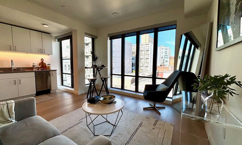 A brand-new junior 1 bedroom condo in the vibrant, culturally diverse and safe neighborhood of Lower Nob Hill. Located on the penthouse level of a modern, new construction, architecturally striking building, this is a perfect luxurious starter home for a single or a couple or an ideal pied-a-terre for that professional who would like to have a warm and welcoming place in the city to unwind and recharge. The location, in the heart of one of San Francisco’s most vibrant neighborhoods, offers easy access to a plethora of epicurean, culinary, shopping, and entertainment experiences—from cult classic bars to fine dining, artisanal coffee houses, and vintage haunts. You don’t need a car here, but if you have one, there are parking garages nearby, some just a block away, offering monthly leases.