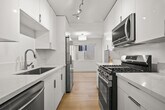Spacious and bright apartment, recently updated and in a quiet building. Stone countertops and new cabinetry in the kitchen and bathrooms. Laminate wood flooring thoughout the unit. LOTS OF CLOSET space. Closet in primary bedroom recently fit out to maximize efficiency and storage. 1 space of covered parking garage is included.