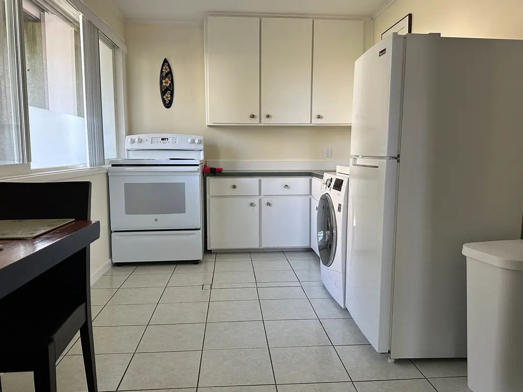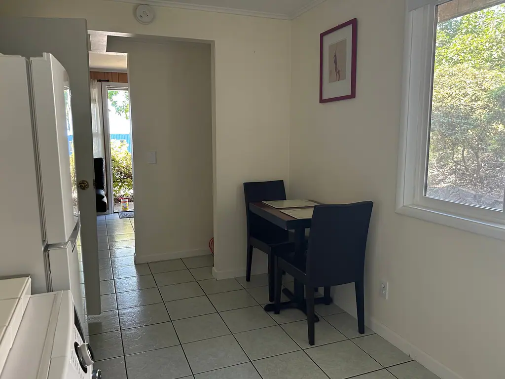 Walkable, bright, spacious fully-furnished one-bedroom apartment. Quiet, lovely residential setting. Spacious kitchen, bedroom, and full bath. Bus stop and grocery store nearby. Comfortably furnished with queen size bed in the bedroom and a sleeper sofa in the living room for the occasional guest. Fully appointed kitchen with new refrigerator, stove, full-size oven, and washer-dryer unit. Walk or bike to the University of Oregon, local eateries and grocery stores, Amazon bike path and dog park, and Laurel Wood Golf Course.
