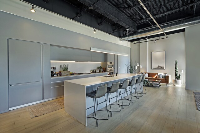 Spacious 3 bedroom, 3.5 bathroom built in 2018 right in the action at the intersection of Damen & Division. Each bedroom has an en-suite bathroom with tub and walk-in closet. The unit boasts tons of storage and features a laundry room, pantry, large entry walk-in closet, and an additional storage room-which actually doubled into an office space for quarantine. Huge combined kitchen/living room/dining room/breakfast nook creates plenty of space to spread out. Southern exposure for all day sunlight. Intimate building with just two total units. Shared roof deck with gas and water hook-ups. Two car garage included with rent.- Courtesy of Wescove LLC Jorge Hurtado Smart Home Realty