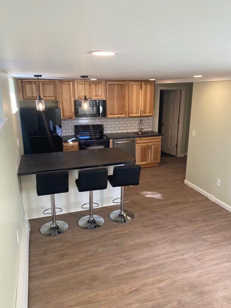 Available 11/3. Fully renovated 2 bed 2 bath basement apartment. Pets (small dogs and cats) are allowed with a pet deposit and $25/pet/month fee. Tenant pays gas (heat), electricity and internet. Water/sewer/trash/recycle is included. Full kitchen with dishwasher, fridge, microwave, custom breakfast bar, flat top stove. The apartment has a master bedroom with attached bath and a private laundry/storage/utility room off the second bathroom. Although this is a basement apartment, it does not feel like a basement with normal ceiling height, lots of windows and natural light. $25 application fee per adult to cover my costs to get background and credit checks completed. If you have a recent background and credit check from a reputable source, I will gladly accept this and waive the $25 fee. I am a small property manager with only a few properties...no corporate ownership here. Call/text/email for more info or for an application.
