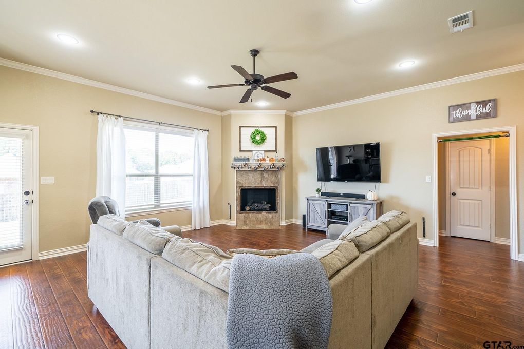 Newer home in Bullard ISD is waiting for your occupancy. Located in an established neighborhood and close to schools with easy access to Tyler and Loop 49. This Bullard home features granite countertops, hardwood floors, tile and carpet. Three bedroom, two bath, two car garage with a split floorplan: Large master bedroom has en-suite bath with double vanities and walk-in shower. Beautiful yard with privacy fence and sprinkler system. Home has gas heat, gas water heater and gas fireplace. Small pets could be considered. Lease is for one year. Renter is required to maintain yard and landscaping. There is an application fee, and applicant must pass credit and criminal background check.