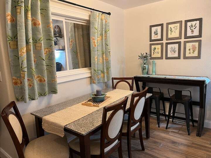 This is a fourplex with 4 apartments that have the same layout. 3 bedrooms and 2 bathrooms. All have in-unit washer and dryer, beautiful decor, comfortable king, queen, and full beds. Accommodating up to 6 guests. Apt B also has a pull out couch and can accommodate up to 8 people. There is a side yard with a patio and deck area with grill and outside refrigerator. The side yard is a common area and for use of all guests. There is 2 garbage cans in front of the building and any can be used, they are not labeled. This building has been remodeled with in the past 3years. Bi-weekly cleanings are included in monthly rent. We strive to maintain a safe and clean environment for all of our guests. Please email with any further questions.