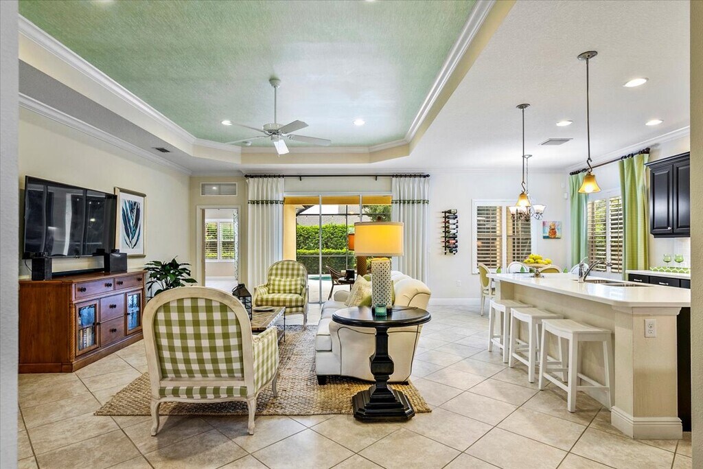 As a former model, this home is tastefully furnished and decorated. Home is comprised of a LARGE master bedroom with its en suite bathroom, as well as 2 other bedrooms and an additional bathroom. There is also a den, which can be used as an office, as there are comfortable chairs with a TV mounted on the wall above the desk. Home has an open floor plan, spacious living room, kitchen with a large island (great for entertaining), and a dining/breakfast nook. Through the sliding pocket doors you can step out to the back lanai. The patio has a screened in HEATED swimming pool, patio furniture, gas grill, as well as a wall mounted TV. Garage is large enough for two cars and storage space. This community is gated, and right across from the home is the community swimming pool, with hot tub and additional space for BBQ's. Across the street there is also a tennis court and pickleball courts, as well as playground. Overall, this is the perfect home whether you are on vacation, work relocation, or in transition while your home is being built. If you are a golfer, there are multiple golf courses within a 5-10 minute drive. Location is great as I-75 is 10 minutes away, which can easily take you north towards St. Petersburg/Tampa or south Towards, Sarasota, Venice and surroundings. This is an annual lease rate. Minimum 6 months available. Subject to approval by HOA. This is an annual lease (or minimum 6 months). No smoking and no pets allowed. Any evidence/sign of smoking or that pets were in the property, you will be charged a $500 fee. Tenant will pay for all utilities, including electric, gas, water, and cable/internet. Owner pays for HOA, which includes lawn maintenance.