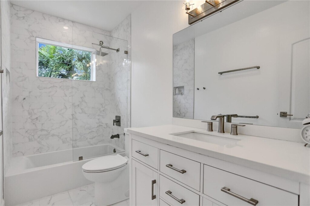 Step inside this beautifully updated 3-bed, 2-bath, 1,600 sq ft single-family home in North Miami — a perfect blend of modern comfort, style, and smart living. The primary suite features a spa-inspired bathroom with a new rainfall shower, seamless glass enclosure, marble tile, LED-lit mirror, and dimmable lighting that sets the tone from morning routine to evening unwind. The hallway bath is equally impressive with its own rainfall shower, seamless shower/tub combo, abundant natural daylight, and soft dimmable lighting at night. All bedrooms are finished with white oak hardwood floors, adding warmth and sophistication throughout. The upgraded kitchen offers a clean, contemporary look with new white quartz countertops, a peninsula with elegant dimmable pendant and recessed lighting, and a suite of premium Samsung appliances — including a Samsung Bespoke stainless-steel refrigerator with touch screen, WiFi, Amazon Alexa, Samsung TV & Spotify integration, plus a Samsung smart stove/oven connected through the SmartThings App. For added convenience, the covered carport includes a 240v / 60-amp EV charging port, perfect for Tesla owners and anyone ready for electric living.