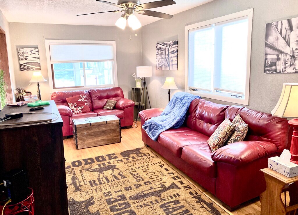 Breathtaking views of the Wisconsin River right from your sun porch or bedroom window. Layout includes living room, kitchen, dining room and three-seasons sun porch. Upper level has two bedrooms with one bedroom opening into a second (so layout requires second bedroom user to pass through first room). Upper level layout would be great for the tenant who has an office space and bedroom. There’s also a bench out front by the river and a garden in your front yard. July 1st start date. All brand new furnishings ordered fresh for your stay! New mattresses, couches, bedroom sets, bedding and more. Home decor to include large local canvases by renowned local photographers. New 55” flat screen TV and electric fireplace. Minimum lease term of three months. Bill consolidation package is ~$2,500 per month including cable, Wifi, smart TV, furnishing and general house stock. (Pricing variable depending on demand, length of stay, number of people, pets, etc). (5 months 2500 per month/2 months 2650 per month/12 months or more please reach out for custom quote). Catch walleyes out your front door (literally) you can cast for walleyes out front. We live a few houses down and we catch them all the time. Take your family out on a sandbar walk. See eagles, osprey, deer and more. This is some of the most desirable frontage in the entire community of Portage and greater Columbia County, located just 16 miles from Wisconsin Dells and a very easy half hour commute to the east side of Madison. Tired of city living or paying for an apartment with no perks? Change your life and your outlook with a million dollar view. Property brought to you and operated by Appleton Corporate Housing. (With more furnished housing all over Wisconsin). Pets are negotiable. $250 non refundable pet deposit will be collected up front per pet for all stays including furry friends. Note: Photos (now updated but some upgrades still in progress) — before updated design touches to make this a fully stocked home; and arrival of new furniture. Some of these upgrades include new couches, bedroom sets, electric fireplace and more.
