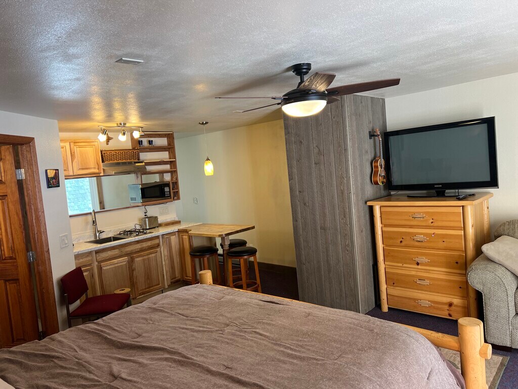 Furnished studio apartment with efficiency kitchen, king bed, workstation, tv, Starlink Wi-Fi, and more. Enjoy the quiet solitude of mountain living and only seven minutes from Conifer and Aspen Park. 25 minutes to red rocks and 20 minutes to Evergreen.