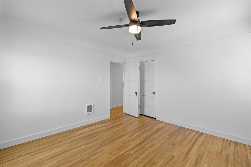 Duplex upstairs unit with original refinished hardwood floors. Three spacious bedrooms with ceiling fans in each room. This duplex is located in a very quiet residential neighborhood on a cul de sac. This home includes 1 off street parking in the back and a shared yard. Washer dryer hookups in unit. Pet friendly with a pet rent. There is an opportunity for extra storage for a fee in the basement. Requirements: 650+ credit score- 2.8x income- no prior evictions. Available to see with appointment on Saturday Monthly water RUB of $100 Applications available on apartments dot com