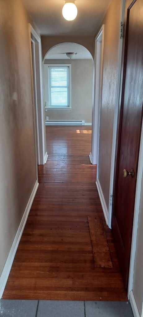 2 bedroom/1 bath upstairs apartment; hardwood in living room and bedrooms; ceramic tile in kitchen and bath; double-pane insulated windows; Rent includes water and sewer; A pet MAY be approved with fee; NO smoking inside; background check, rental history, stable employment; 2 financially secure people required on lease (one can be co-signer only); 2 YEAR LEASE. Please note STEPS are very STEEP.