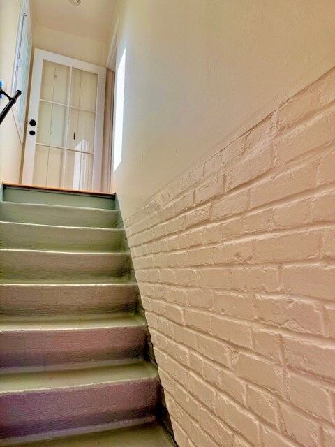 This is a fairly large one bedroom, the upstairs unit in a duplex. The living room is good sized with some view. Besides the bedroom it also has a second small room which has been used as a den/office/pantry. Take your pick. It includes a stairway to an attic with quite a bit of storage. Bathroom has tub and shower and has recently been upgraded. Full kitchen with double door refrigerator and a nice range with oven. There is a new vented wall furnace. There is also a rear entrance from the kitchen with stairs down to a fenced back yard which has a space for a garden, currently overgrown. The previous tenants had a medium sized quiet dog and the tenants downstairs have two very friendly golden retrievers, so a medium sized quiet dog, perhaps not more than 25 pounds, would be permitted.