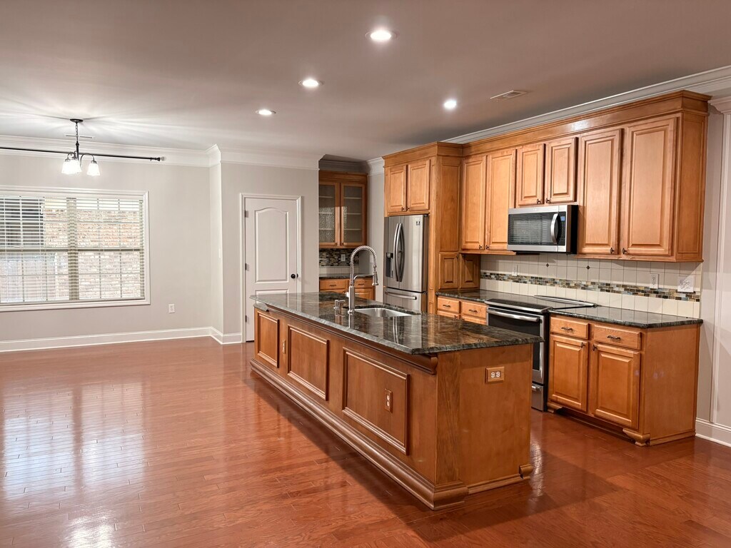 Nestled in the quiet cul-de-sac community of Chelsea Park, this beautiful 3-3-2 borders an Alabama Land Trust and features a clear stream flowing from the huge Betts Spring, with 2 small waterfalls and the sounds of the many types of birds that flock to the wetland around Betts Spring. The open floor plan is perfect for both family living and entertaining. The large kitchen island, informal dining area, and formal dining area provide ample space for hosting. Additional areas offer flexibility for extra seating or a play space for small children. With 9-foot ceilings and hardwood floors, the home feels spacious and inviting, while the electric fireplace adds a peaceful ambiance. Upstairs, you'll find a living room, a separate bedroom, and a full bathroom—ideal for older children, guests, or multi-generational family members seeking privacy. The yard is fully fenced, offering both privacy and security. Pets will be considered on a case-by-case basis, with preference for small dogs and no aggressive breeds. However, no pets are strongly preferred. Schools are Midtown Elementary 10/10, Discovery Middle School 10/10, and Bob Jones High School 8/10. Tenant pays for electric and water, including irrigation. Tenant provides yard maintenance.