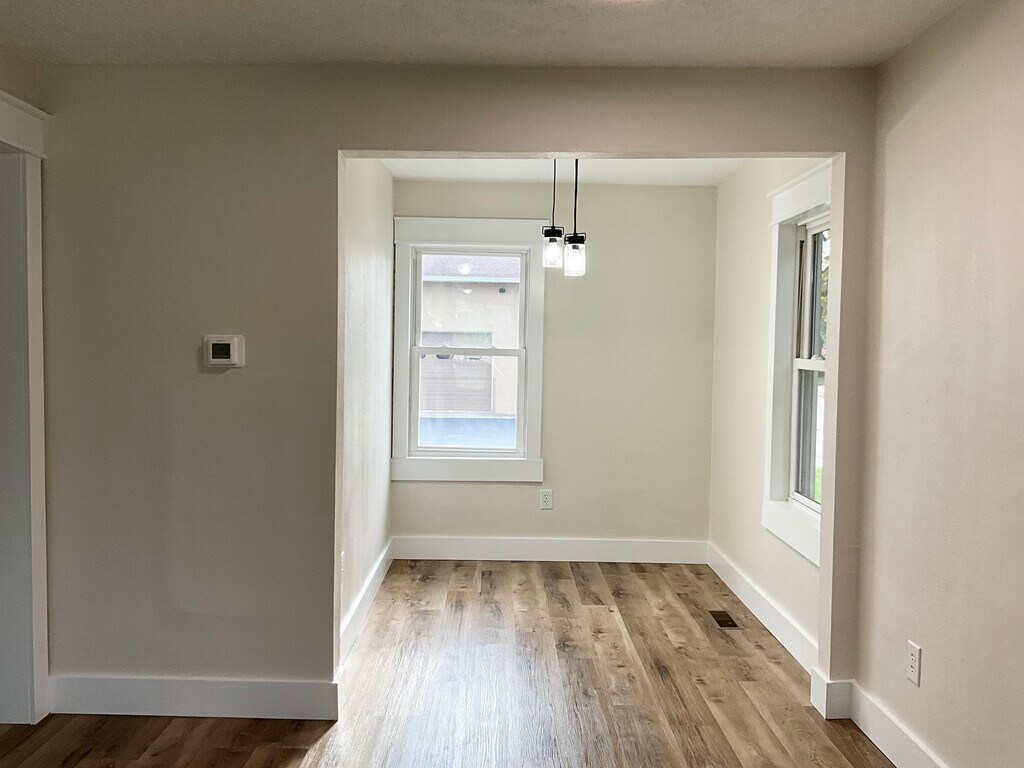 This is a single family house featuring a charming cottage appearance with modern updates inside! New kitchen includes granite countertops and tile backsplash. New refrigerator, stove, microwave, and dishwasher are provided. Bathroom has been completely updated. New tile walls in shower/tub combo, vanity, and toilet. New flooring and paint throughout the property. Full basement provides washer and dryer hookup and plenty of storage. This property has a garage and fenced in back yard. It is located behind the post office and is within walking distance of a variety of restaurants, coffee shops, and boutiques.