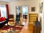 Sunlit and spacious 2 bedrm. fully furnished apt. located on Glenwood Ave. in the heart of Deering Center. $2,525 / month. Owner pays for water and sewer, fiber Wi-Fi, compost service and snow removal. Tenant pays for natural gas heat and electricity. Recently repainted 1st floor apartment in a 3 unit building includes 2 bedrooms, living room with gas fireplace and adjoining dining room with pocket doors, fully outfitted kitchen, bathroom with full tub and shower, and in unit front load washer and dryer. Second bedroom has futon/couch with mattress topper and can be used as a bedroom or den/office. Newly refinished hardwood floors throughout and vinyl tile in bathroom and kitchen. Wraparound back porch overlooks a beautiful large backyard with plenty of garden space. One off-street parking space comes with the apt. and room for additional vehicles is available during winter parking bans. Quiet neighborhood has plenty of room for on-street parking. Well behaved dogs with references will be considered. Walking distance to schools, Baxter Woods, Deering Center shops, and restaurants. 2 miles to Maine Medical and downtown Portland. No smoking. Flexible lease options. Available Nov. 30.