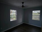 ½ of a remodeled duplex including new flooring, fresh paint in the kitchen and bedrooms, installation of central heat & air and a new refrigerator. There is a closed patio in the back with a doggie door for a small pet, a shared laundry room and huge shared fenced in backyard.