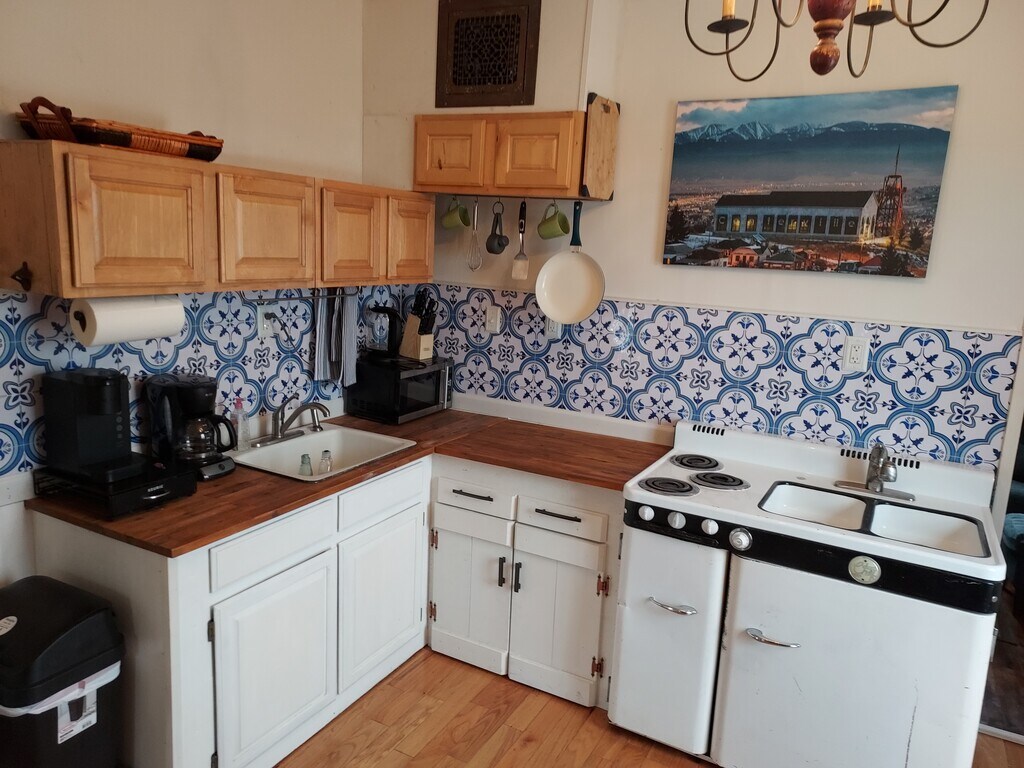 FURNISHED HOUSE. Historic Butte house that's been fully renovated. One full bedroom and a bonus room which serves as a utility room, but could be used as a bedroom if absolutely needed. House features washer & dryer, queen sized bed, a convertible bed/sleeping lounge, internet service, a television, gas heat, a large shower, a basic equipped kitchen, and a quiet neighborhood. Located 5 minutes from both Montana Tech and St. James Hospital, up in the Centerville neighborhood. All utilities are included in the price; no pets. Snow tires are recommended for travelling here in the winter.