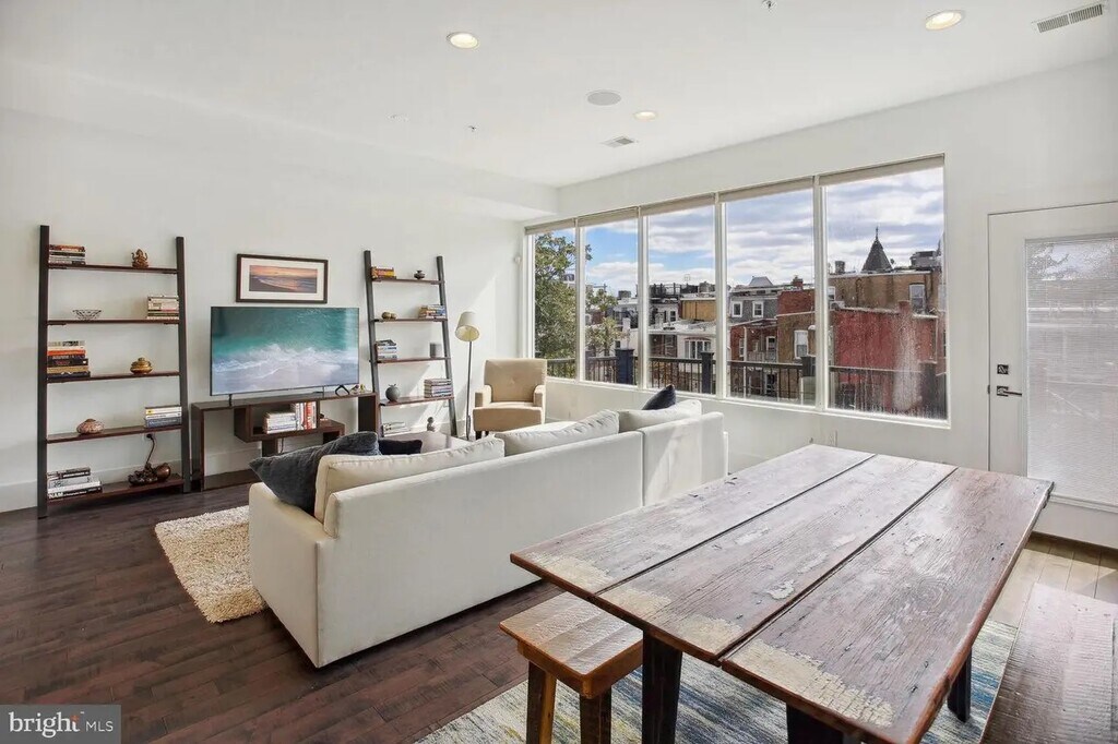 3-bedroom / 2.5 bathroom condo in a beautifully renovated Columbia Heights row house. Top-floor unit features an expansive private roof deck, private dedicated parking and a large storage unit. The nearly 1,600 square foot unit offers a light-filled main living area with open concept kitchen, dining, and seating areas. The kitchen has an abundance of cabinet storage and stainless-steel appliances. The condo has 2.5 bathrooms including a powder room off the main living space, and a en-suite bathroom in the primary bedroom with marble finishes and city views. The primary bedroom also boasts a large walk-in closet and room for a king-sized bed.