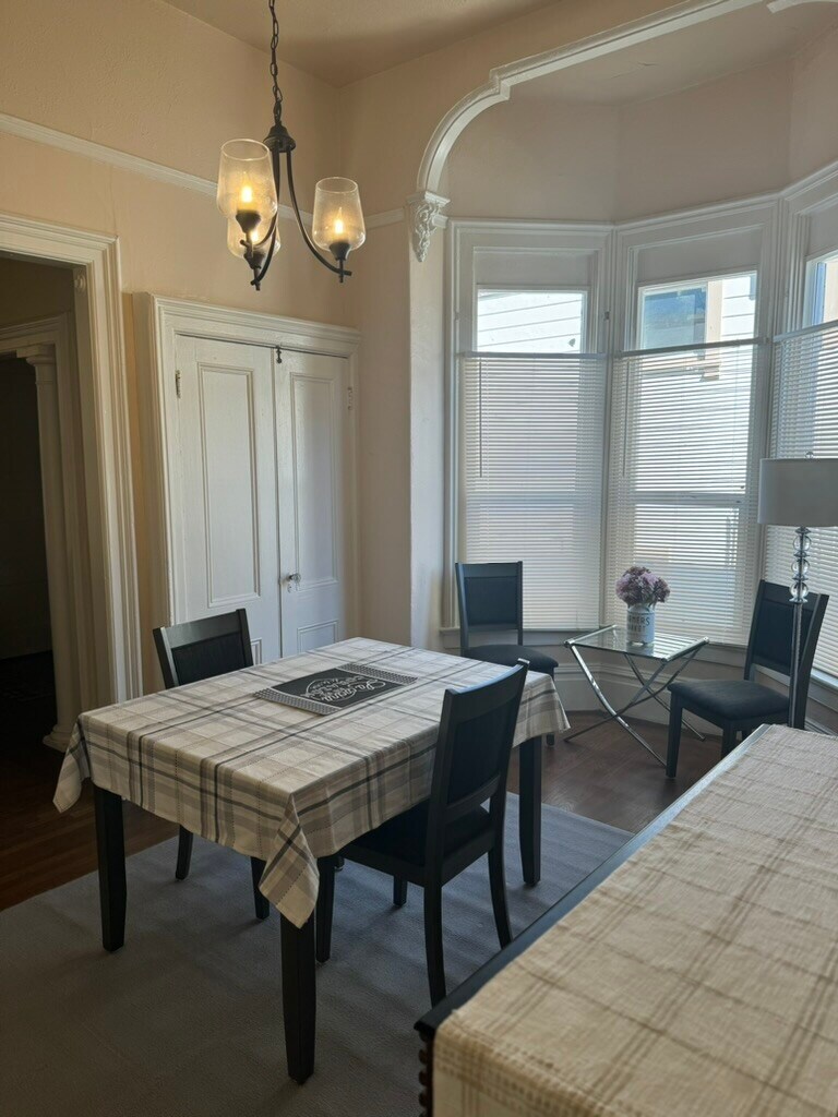 Lower unit in victorian duplex. Unit will be rented unfurnished. 2 bedroom unit with living and dining room. Full kitchen with all appliances. bathroom with bathtub shower combination. washer and dryer. assigned off-street parking space. tenant pays for gas and electric.