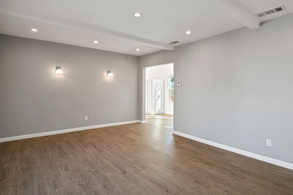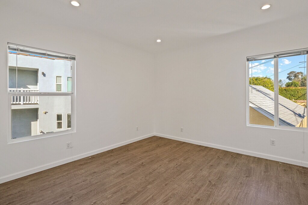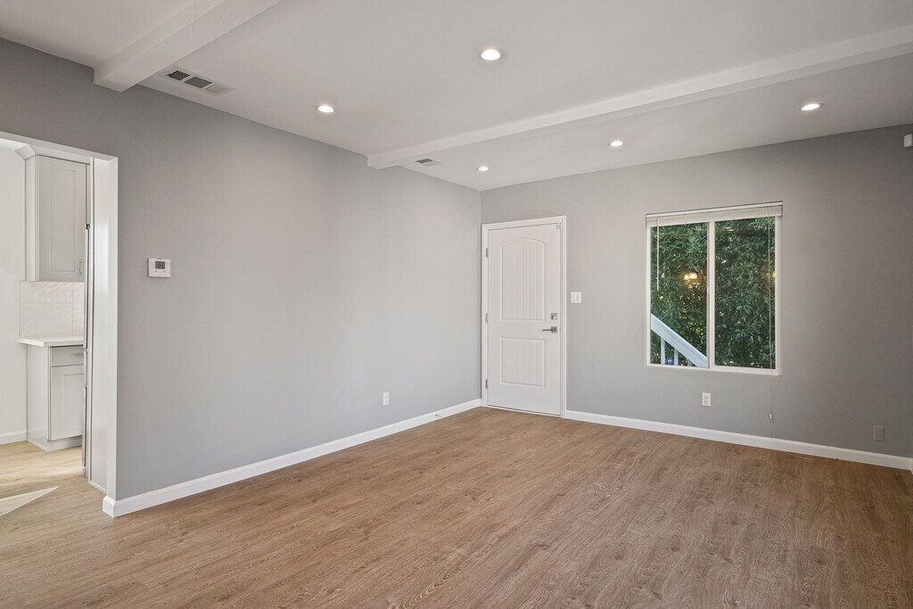 Remodeled California Monterey Style Triplex located in the prime neighborhood of Wilshire Vista in the Mid Wilshire/Miracle Mile area. 1+1 upper luxury unit with open floor plan. Super light and bright unit. Completely remodeled with all modern conveniences. Brand new stainless steel kitchen appliances includes -- refrigerator, stove, dishwasher, microwave, and garbage disposal. Beautiful quartz kitchen counter-tops with updated cabinets. Tankless water heater. New remodeled baths and great modern closets. Double pane windows with mini blinds and LED recessed lighting with dimmers throughout. WiFi and Cable ready in every room. Nest digital thermostat for Central A/C and Heating. ADT and Ring camera security systems. 1-car parking area included. Beautiful view of the Downtown skyline from the kitchen window. Private patio area with mood lighting and table with 4 chairs. Rear area accessible for plantar boxes for personal garden. Will consider small pet. Prime Mid Wilshire location. Quiet neighborhood. Close to Sprouts Farmers Market, Target, Starbucks, Coffee Bean, Whole Foods, Trader Joe's, Equinox, and The Grove. Great location for schools, public Metro transportation, hospitals, restaurants, shops, La Brea Tar Pits Museum, LACMA, El Rey Theatre, and Academy Museum of Motion Pictures.