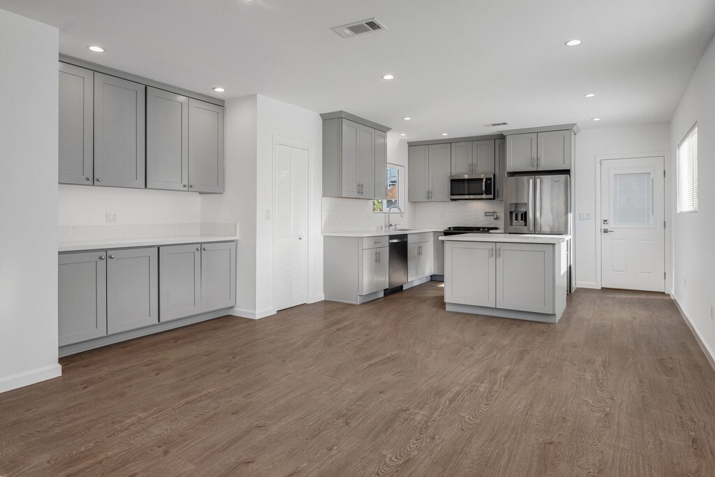 Remodeled California Monterey Style Triplex located in the prime neighborhood of Wilshire Vista in the Mid Wilshire/Miracle Mile area. 3+2 upper luxury unit with open floor plan. Super light and bright unit. Completely remodeled with all modern conveniences. Brand new stainless steel kitchen appliances includes -- refrigerator, stove, dishwasher, microwave, and garbage disposal. Beautiful quartz kitchen counter-tops with updated cabinets. Tankless water heater. New remodeled baths and great modern closets. Double pane windows and LED recessed lighting with dimmers throughout. WiFi and Cable ready in every room. Nest digital thermostat for Central A/C and Heating. ADT and Ring camera security systems. 2-car finished garage with remote. Front and rear balconies--french doors open to front balcony from living room and bedroom with beautiful street views. Will consider small pet. Prime Mid Wilshire location. Quiet neighborhood. Close to Sprouts Farmers Market, Target, Starbucks, Coffee Bean, Whole Foods, Trader Joe's, Equinox, and The Grove. Great location for schools, public Metro transportation, hospitals, restaurants, shops, La Brea Tar Pits Museum, LACMA, and El Rey Theatre.