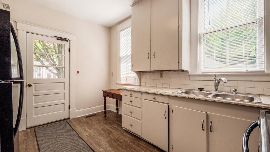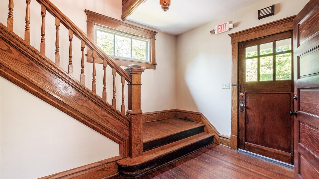This beautifully updated Granville property blends historic charm with modern convenience and offers flexible use as a residential home or commercial office space. Built in 1904, the building features original woodwork and gleaming wood floors throughout, preserving its classic character. The main level includes a spacious kitchen, a half bath with laundry, and both front and back staircases for easy access. Upstairs, there are five bedrooms and two full bathrooms—including one with a walk-in shower—providing versatile space for living or professional use. Enjoy outdoor living on the large front porch, ideal for relaxing or greeting clients. Additional features include a two-car garage, off-street parking, and 2,326 square feet of thoughtfully designed space on a 0.15-acre lot. Located in the heart of Granville, this property offers the perfect combination of timeless charm, modern updates, and flexible functionality