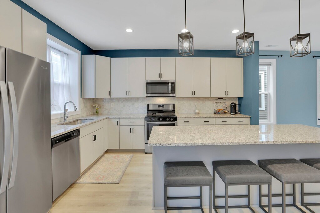 This beautifully maintained 2-bedroom, 2.5-bath condo offers a bright, open-concept layout. Step inside to discover spacious living and dining areas with plenty of natural light and a modern kitchen. The well appointed kitchen contains an island, stainless steel appliances and ample counter space for culinary creativity. Upstairs, you'll find two generously sized bedrooms, each with its own en-suite bathrooms and spacious walk in closets. Enjoy the privacy and convenience of a 2-car detached garage, plus a cozy front porch and private back patio area. The home is nestled in a walkable community with green spaces, and you're just a quick drive or bike ride from the Short North, German Village, and Nationwide Arena.