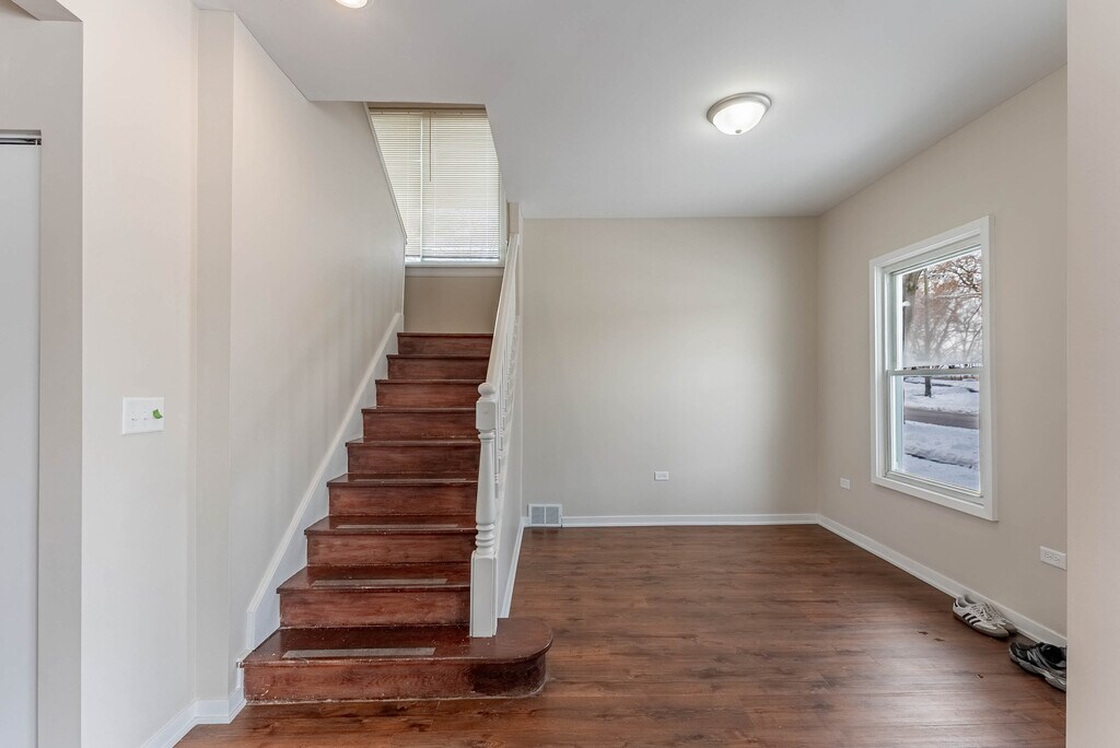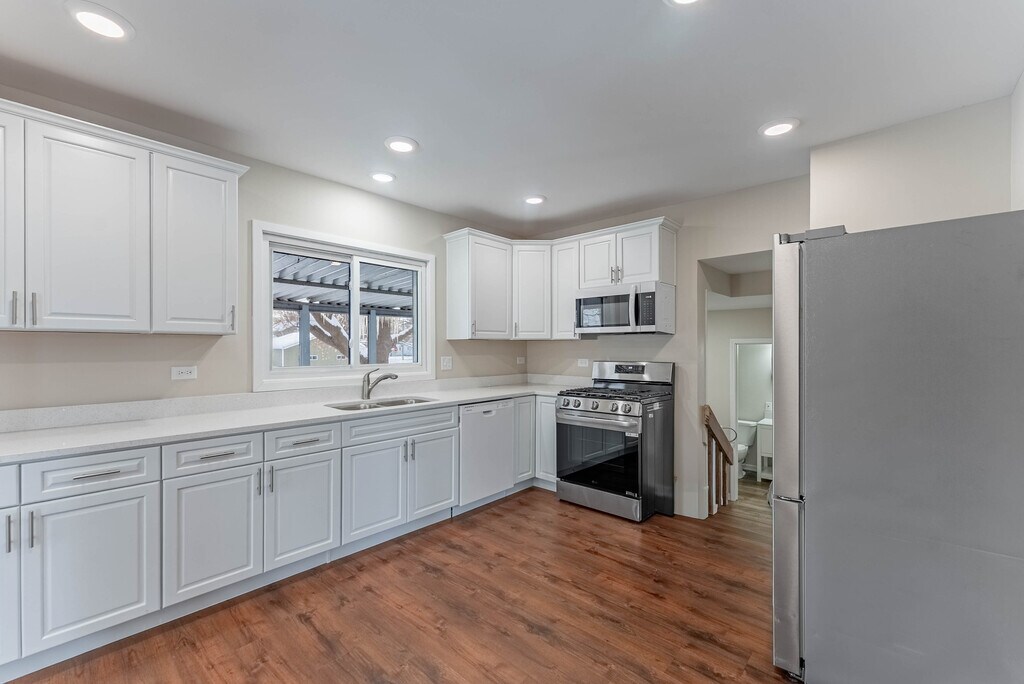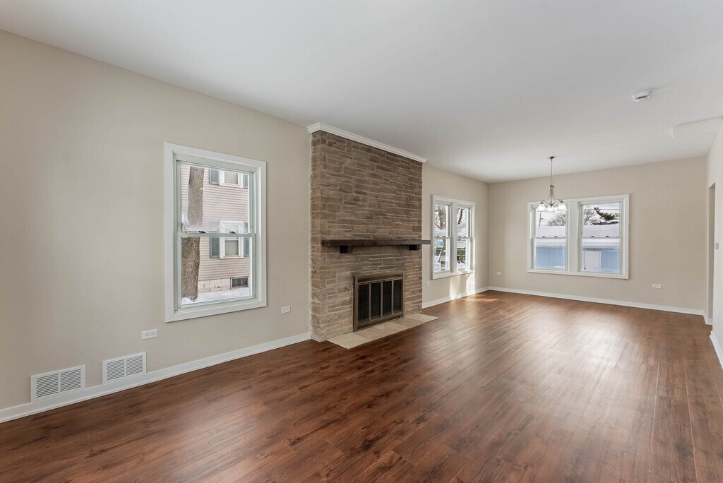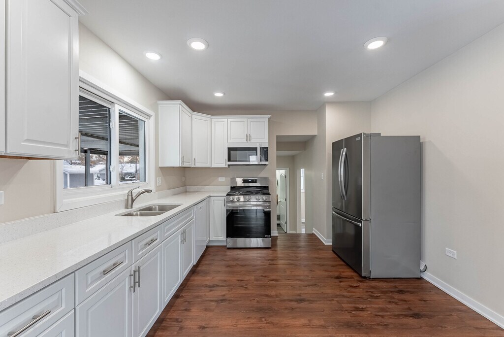 Welcome to this beautifully renovated home in downtown Montgomery. Featuring nearly 2,700 sq ft of living space, this property offers modern updates, generous room sizes, and a layout perfect for comfortable everyday living. Enjoy a brand-new eat-in kitchen with solid-wood soft-close cabinets, quartz countertops, new fixtures, and new appliances. The main level includes 9 ft ceilings, an oversized living room with a full brick fireplace, a large bonus room, and a convenient first floor laundry. Both bathrooms have been updated, and the home features all-new LVP flooring, fresh paint, upgraded electrical (100 amp), new copper and PVC plumbing, a newer furnace, new water heater, vinyl windows, and added insulation. The partially finished basement offers additional living space and storage. Outside, enjoy a fenced yard with mature trees, a screened-in porch, and off street exterior parking. Located close to the Fox River, parks, schools, restaurants, shopping, and major roads including Rt 31, Orchard Rd, and I-88. A move-in ready home in a highly convenient location — schedule your showing today!