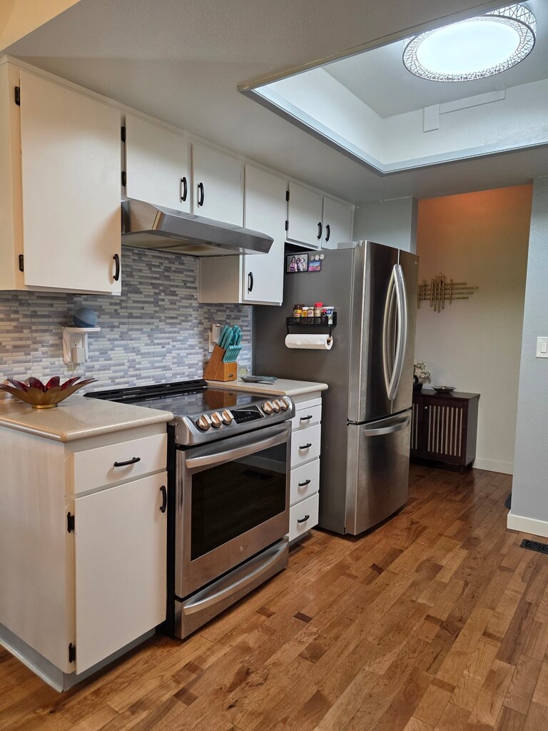 Gorgeous newly renovated SE Portland Condo with detached garage! This ground level, 2 bed 2 bath condo has recently been revonated. New LVP in both rooms and hardwood floor thoughout the house. Has central AC and heat. Washer and dryer in the guest bathroom. Luxurious primary suite and separate primary bath. Large living room and wonderfully functional kitchen with stainless appliances, plenty of storage, and spacious dining area. Sliding door leads to the patio and backyard, perfect for summer BBQs! Perfect location- tucked back on a quiet street, yet close to transit, shopping, banks, restaurants and grocery stores like Fred Meyer and Winco. Must pass background check and earn 3 times the amount of rent per month. $1995 deposit and $1995 first month's rent due at lease signing. Minimum lease of 1 year. Rent comes with water, sewer and garbage. Dogs must be less than 50lbs and friendly. Maximum of 2 cars. Garage for main car and the other one parks in an unmarked parking.