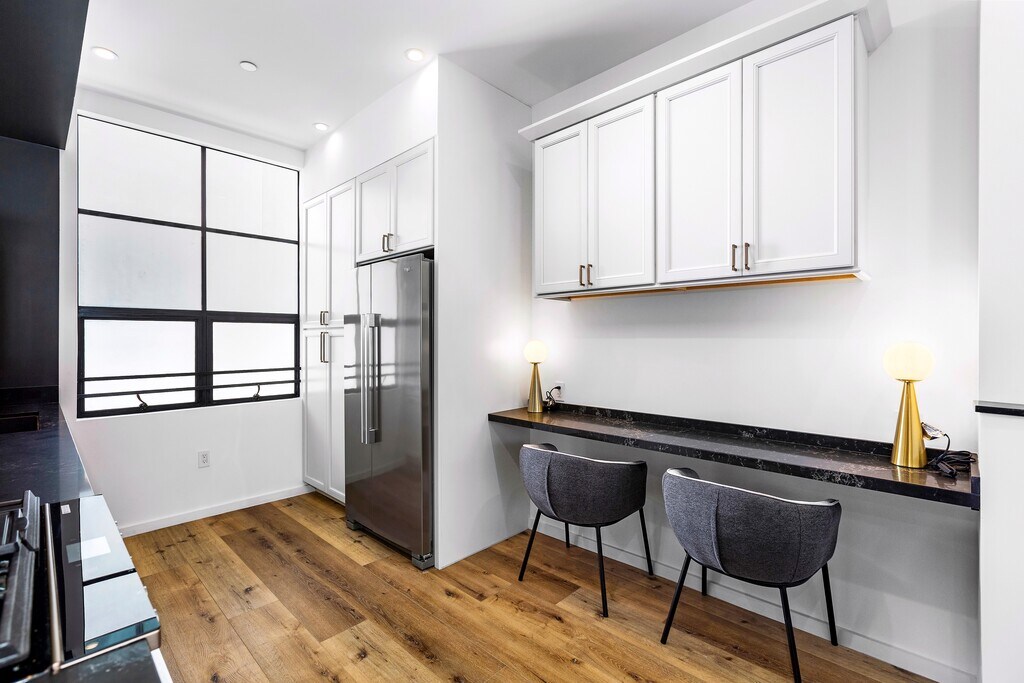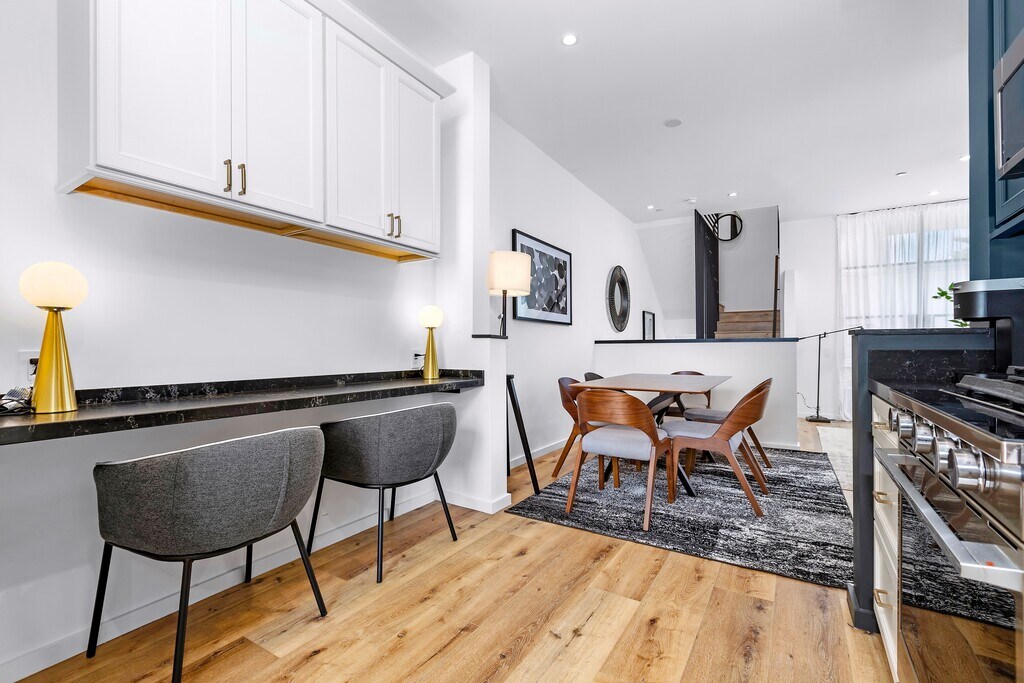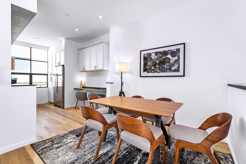 This is an end unit in a newly constructed townhome building of only 5 units. It is a gated complex in the heart of Hollywood; These unique 4-bed, 4-bath townhomes are of the highest quality built to achieve a perfect balance of timeless design, sophistication & elegance using warm wood floors, steel frame windows glass, steel frame glass doors and elegant tiles. They have lots of windows and are filled with natural light. The main level floor offers an open space with furniture and décor that invite you to cozy up by the fireplace or relax on your balcony sofa; The 6–8-seater wood dining area is perfect for nice dinners. The stunning fully stocked kitchen is equipped with dishes, glasses, pots, and pans, etc. and has champagne-color appliances, Italian faucets, custom cabinetry & shelving. All 4 bedrooms are complete with large size well-made beddings, full-size built-in closets, flat screen TV, filled with natural light and dressed with sheer curtains. Chic bathrooms continue the design tone and luxury feel of this home. The 2-person tub in the master bedroom with a separate large shower is special. Sealing your experience is a large private rooftop deck with comfortable outdoor furniture overlooking the Hollywood sign. It is ready for your BBQ with a natural gas line. Electric outlets are provided around the roof deck to connect your own projector providing a spot to unwind and take in the sunsets and breathtaking views. The unit also provides a stacked washer & dryer, a tankless water heater, as well as an attached 2 car enclosed garage with an EV charging port provided. THIS UNIT MUST BE SEEN! THERE ARE VERY FEW IF ANY COMPARABLES…HURRY AS WE ONLY HAVE ONE LIKE THIS.