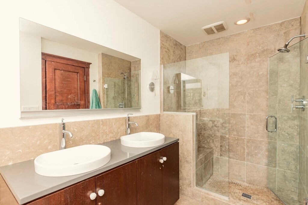 This one stands out above the rest. Come see this beautiful, spacious 3bd/2.5th bath in Edgewater Glen. This stunning duplex down exudes elegance and modern convenience. As you enter you are greeted by the airy floor plan, seamlessly connecting the spacious living area, dining room and kitchen. The gourmet kitchen boasts Fisher Paykel SS appliances, a filtered and remineralized water tap, and an abundance of counter space and storage. The kitchen leads outside to the covered patio space. The living and dining room wall is full of west facing windows and exposed brick. The bidirectional blinds provide the perfect balance between privacy and natural light. Delight your family and guests with the built-in wall speakers. Retreat to the main floor primary suite oasis. This features a custom walk-in closet, luxurious en-suite bathroom adorned with a deep soaking jet tub and separate shower, flanked by a sunroom office. All three bedrooms are larger than your typical Chicago bedroom. Take the wide, open stairs down to the expansive lower level which boasts heated floors and a beautiful built-in library. There is a wealth of space for any number of work-from-home setups. There is a custom cozy office nook under the stairs plus a full laundry room. 1258 Hood is located near the Granville redline stop as well as lakefront beaches and bike paths. Walk to restaurants, shops, theaters, and Andersonville just a few blocks south. Walking distance to Whole Foods, Loyola, and the new Peterson Metra Stop. You’re in the top rated Peirce Elementary public school district as well as near several excellent private schools as well. Edgewater Glen is known for its warm community spirit, block parties, festivals and good fun.
