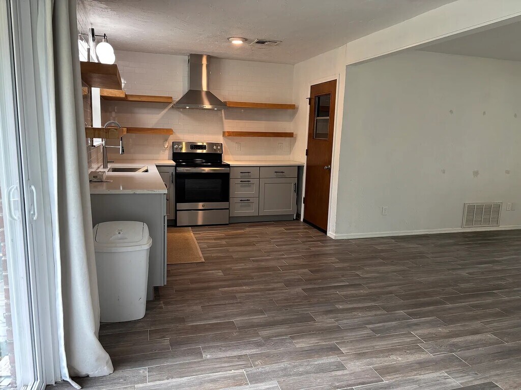 Fully remodeled and close to campus. This dream home sits on a cul-de-sac and is perfect for a family or college students. Enjoy a modern kitchen with dishwasher and refrigerator, updated flooring, a half bath in the master, fenced backyard, central A/C, washer/dryer hookups, garage and more!