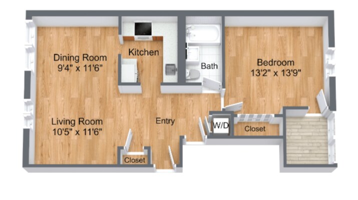 Apartment Unit: 116Apartment Model: 116 - 126 Edgemere Rd$2,4901 Bedroom, 1 Bath, 690 sq ftAvailable Now![]()