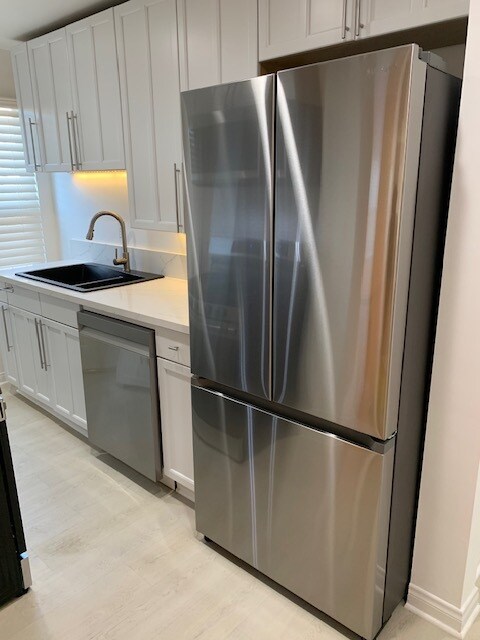 Newly renovated apartment in very desirable city of West Hollywood! Very large unit, bright with lots of windows and sun, huge living room and a large laundry room that can be used as a work space or..., beautifully appointed kitchen, large closets, white oak hardwood flooring in living area, and an spectacularly styled bathroom. Spanish style building build during the Art Deco period, ground floor apartment boasts, luxury, comfort, character, and convenience, nestled in a great walking area, walk to shopping, restaurants, bars, lounges, and more!