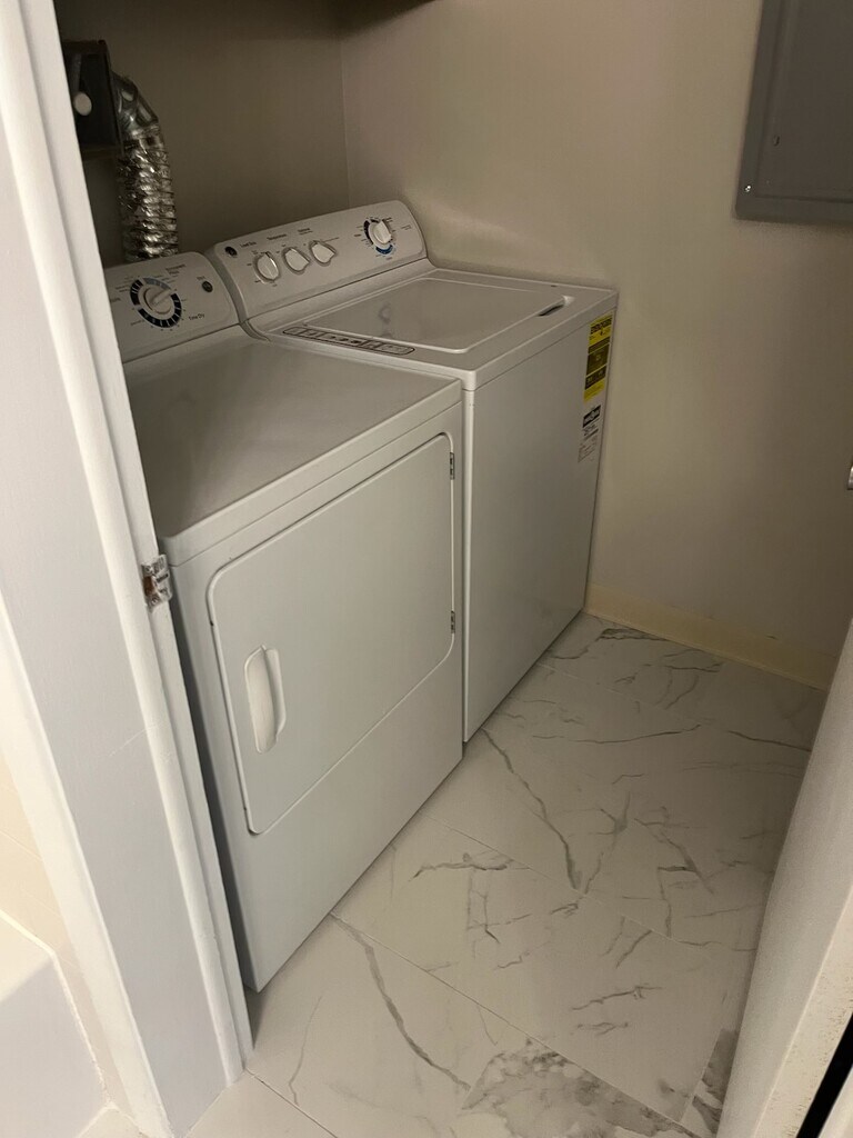 Updated 2 Bed / 2 Bath Ranch-Style Apartment – 1st Floor + Garage + In-Unit Laundry Welcome home to this freshly updated first-floor, ranch-style apartment offering 2 bedrooms, 2 full bathrooms, and 1,092 sq ft of comfortable living space. You’ll love the new laminate flooring in the living room, dining room, and hallway, plus new tile floors and new vanities in both fully remodeled bathrooms. The entire unit has been freshly repainted and is move-in ready. Enjoy central air, forced-air gas heat, and a bright, open living area. The kitchen includes newer appliances (dishwasher and range included), and you’ll appreciate the convenience of an in-unit washer and dryer. Parking includes 1 detached garage space with opener and electricity, plus paved access. Room sizes: Primary Bedroom: 22’ x 12’ Second Bedroom: 11’ x 10’ Living Room: 18’ x 16’ Kitchen: 10’ x 9’ Available: Immediately Rent: $1395 / month | Security deposit: $1395 Message to schedule a showing!
