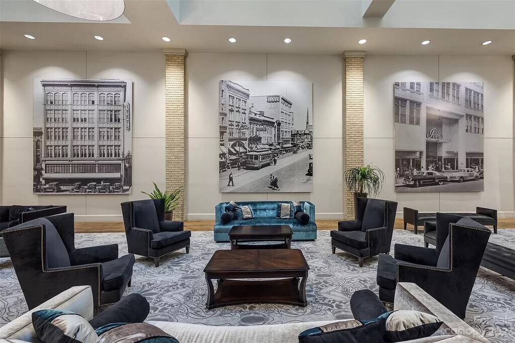 Please note: No Admin fee, no application fee. No parking fee. Gym and all amenities from the Ivey Hotel with no additional charge or fee Located in the heart of uptown on Tryon and Trade! This is where you want to be! This is where the streets are blocked for food festivals and Christmas/St.Patty's/Thanksgiving parade! Right outside your door! Superb 4th floor Condo in the beautiful Historic Ivey's building. The Ivey's building is a rare gem. Centrally located to everything. Walk to work. Or take the trolley located just outside. Easy access to the light rail. Good location for bank employees since it is directly across from Bank of America and Wells Fargo tower. Open and airy loft floor plan with very high ceilings! Living room has gas log fireplace. Kitchen has granite countertops and hardwood cabinets. Bathrooms have tile flooring and glass sliding doors. Bedrooms have carpet throughout. Master bed has walk in closet and double vanity. 15 foot ceilings open up to great views of skyscrapers. Large 10ft windows in living room. Two full baths with tiled bath tub/showers. Appliances include washer/dryer, range stove, oven, and microwave. Enclosed garage and 24-hr security. Entire condo is wired for G-o-o-g-l-e fiber. Super fast internet speeds of over 1 Gb Upload 100 Mbps Download. One assigned parking space included for all owners in the attached garage. If you have more then 1 car, you can secure parking at the guest parking area. 5-star boutique hotel on the 1st and 2nd floor (see pictures). Fitness gym with free access for all owners at Ivey's. Room service provided to residents from 5th and Church restaurant. This restaurant has a wonderful eclectic menu. WHAT I LOVE ABOUT THE HOME It's all about the clubs, hot spots, city life, and food. Located in the heart of everything. Best location in town and spacious compared to other uptown condos. Good for couples and singles who want to live the city life! Located right across Blumenthal Performing arts center. Close from Epicenter, Discovery Place, Spectrum center, Romare Bearden park, and Panthers stadium. Walk to work. Or take the light rail or trolley. Harris Teeter is close by for food shopping. Walgreens is across the street. Hungry? Just go downstairs and eat at the multitude of restaurants attached to Ivey's.