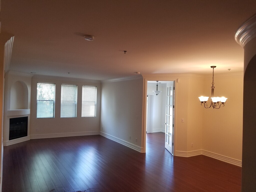 2 Bed 2 Bath + Den Luxury Apartment Home 2nd floor units in 48-unit building. 2-car Tandem Parking. The building was constructed to condominium style quality with impressive crown molding, base boards, and many other fine details that make this apartment truly feel like a home. The apartment home boasts 1,510 square feet, 2 bathrooms, 2 bedrooms, a den and a great balcony -- and did I mention closet space, a fireplace, and an open kitchen with a countertop bar?! This apartment has it all including 2 parking spaces in a secure underground garage. Some other features of the apartment home include: Granite countertops; A/C, Windows/Sliding Door have dual glazing; Gas range, dishwasher, microwave, garbage disposal; Common Roof Patio; Fountain in the courtyard. No Pets Allowed.