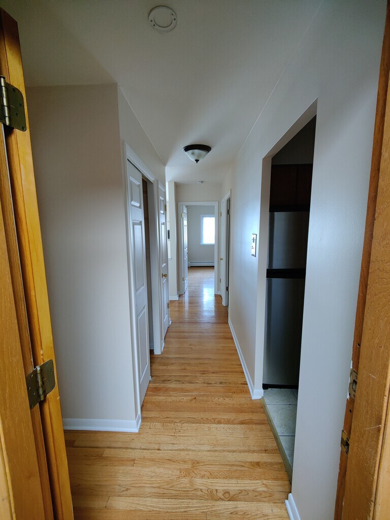 Spacious 1 bedroom apartment on 3rd floor. Nice remodeled kitchen with stainless steel appliance. Plenty of closet space. Separate dining room & Large living room. Hardwood flooring thru out entire unit. 1 Parking space included in the rent. Laundry is conveniently located in the building and right out your back door. Additional storage for the unit. Conveniently located within walking distance to downtown Des Plaines & Train.