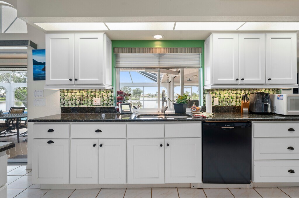 Furnished!! This home is amazing! Has a Great water view, dock and HUGE Pool and a oversized Lanai and it is completely furnished with 5 tv's! 12' ceilings in main living area. This is a 4 bedroom 3 bath house has central air, stove, refrigerator with ice maker washer and dryer. If you like fish, fish off the dock and catch some Big ones! This house is MUST see!
