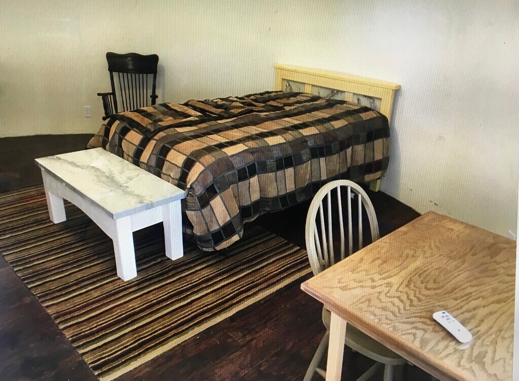 Furnished with or without a double bed. Has a table and chair. Quiet location. Off-street parking. No indoor smoking.