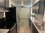 New refrigerator, dish washer, disposal and range New Vinyl flooring in kitchen and dining room New remodeled bathroom. New carpet throughout Garage, driveway and street parking Large patio Large fenced back yard Central air conditioning