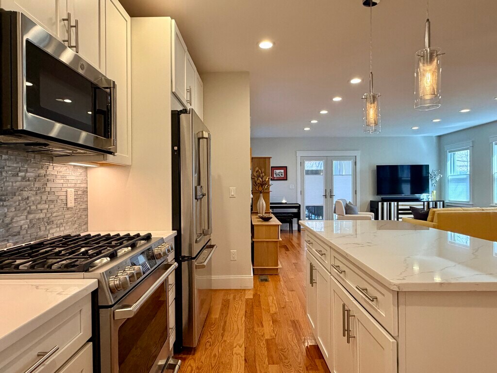 Live in the heart of Davis Square in this beautifully renovated, sunlit 3-bedroom, 3.5-bath home offering spacious, modern living across two levels. Thoughtfully designed with an open-concept layout, high ceilings, oversized windows, hardwood and tile floors throughout, and abundant storage, this home is both beautiful and highly functional. The kitchen is built for real life, featuring a large island, quartz countertops, and high-end stainless steel appliances that make cooking and entertaining effortless. The living and dining areas open directly to a private deck, perfect for morning coffee or unwinding after work. Each bedroom is generously sized, with two featuring walk-in closets and en-suites, a third full bath with a soaking tub, and a powder room on the main level, providing everyone with their own space and privacy. In-unit laundry, central air, one off-street parking spot, and access to a standard power outlet at the rear deck for EV charging add to the home's convenience. All of this is tucked away on a quiet residential street, just moments from Davis Square, Porter Square, the Red Line, the Somerville Community Path, and everything the neighborhood has to offer. - 12-month lease term commences between 9/1/2026 and 10/1/2026 (later start date preferred) - Tenant handles all utilities (gas, electric, and water). - Tenant is required to obtain renter's insurance prior to move-in. - Storage customization: The owner is open to discussing a contribution toward or approval of a California Closets modification in the storage closet, subject to lease terms and mutual agreement. Please inquire for more details.
