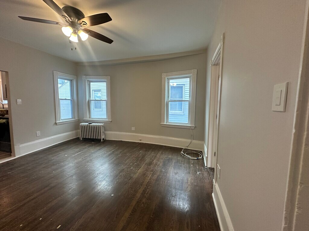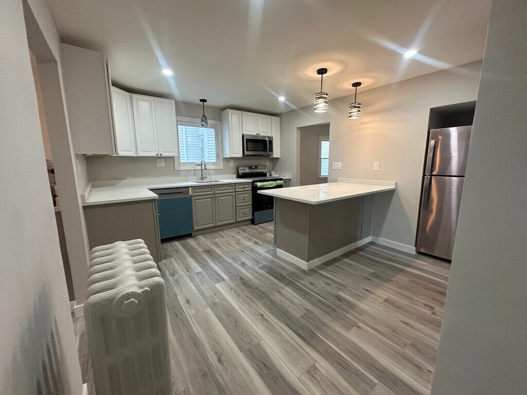 Just remodeled and move-in ready. This updated 3 bedroom apartment offers a living room, office, and a spacious kitchen. The property is located steps from the bus line on Broadway in Everett, providing convenient access to public transportation. The kitchen features stainless steel appliances, granite countertops, grey vinyl plank flooring, and updated lighting. The bathroom has been fully renovated with modern tile and finishes. All three bedrooms include closets, and the living room offers plenty of space for everyday use. There is also a mudroom with additional cabinet and counter space for storage. Additional features include new lighting fixtures and ceiling fans throughout the apartment. Coin-operated laundry is available in the basement, with direct access from the unit for convenience. This home offers comfortable, updated living in a well-maintained property. No pets. No smoking. Street parking only. Utilities are separate. Gas heat.