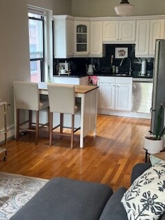 13 Worcester Street is a fantastic housing opportunity that will be available starting September 1st. The apartment, located in the South End, features 2-bedrooms and is beautifully appointed. It includes an eat-in kitchen with stainless steel appliances, an open living room floor plan, nice bathroom and in unit laundry. You will enjoy lofty ceilings and a sunny main room with a working gas fireplace. Heat is included in the rent, making this a truly inviting space.