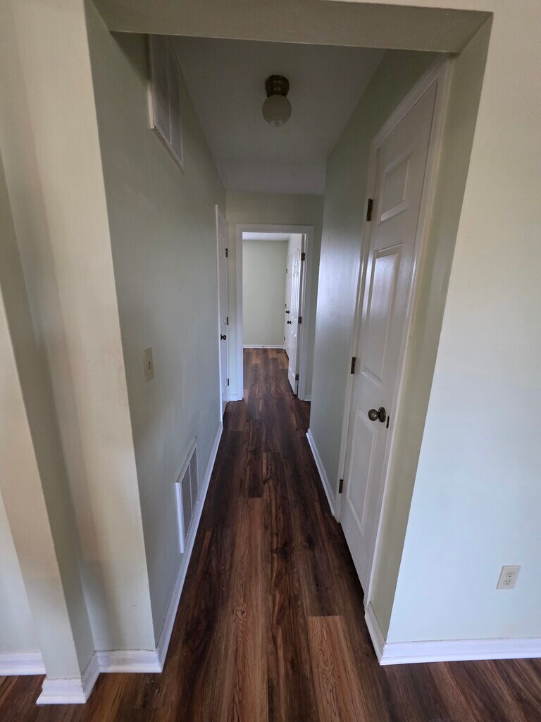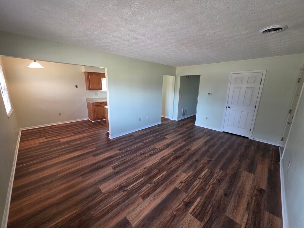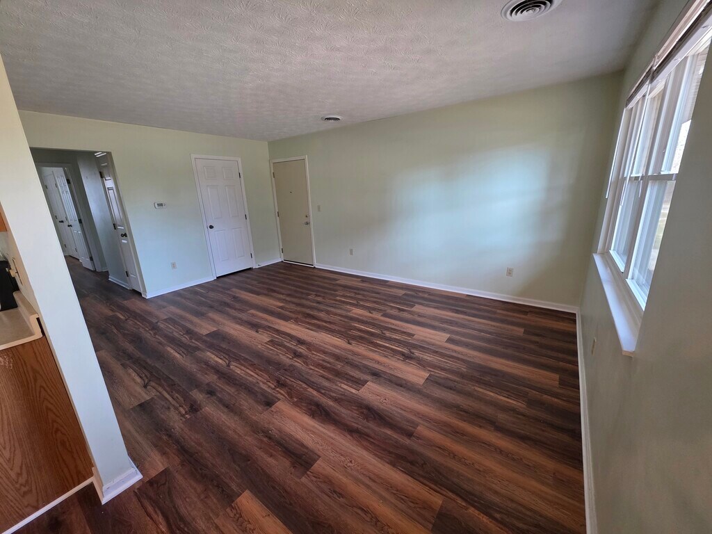 Two bedroom, one full bath, plenty of storage space. New flooring throughout. Rent includes water, sewage and trash.